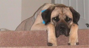 There was, however, a humongous shadow cast from the front of one pen. In it was the largest dog I had ever seen. The attendant said, “That’s Moose.” Realizing she had probably heard the response, “No, that’s a dog” before, I refrained and took her up on her offer to take Moose for a short walk around the yard. Well, one of us took the other for a walk. In the end, I called it a draw. Moose, an English Mastiff who may well top 200 lbs. when he is full-grown, is now part of the Noel household.
